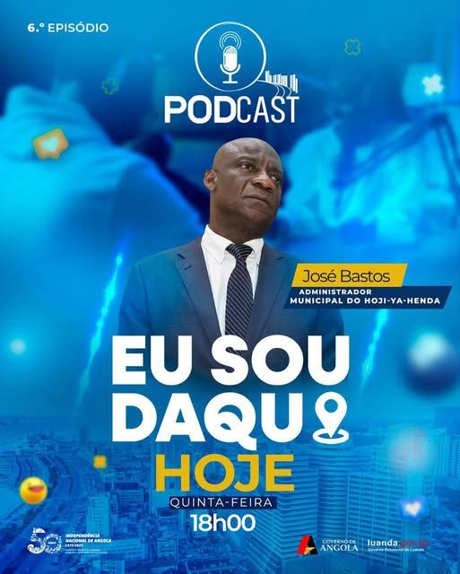 O Governo Provincial de Luanda, através do seu Gabinete de Comunicação Social, convida o público em geral a acompanhar o sexto episódio da segunda temporada do podcast “EU SOU DAQUI”, a ser transmitido hoje, 23 de Outubro.