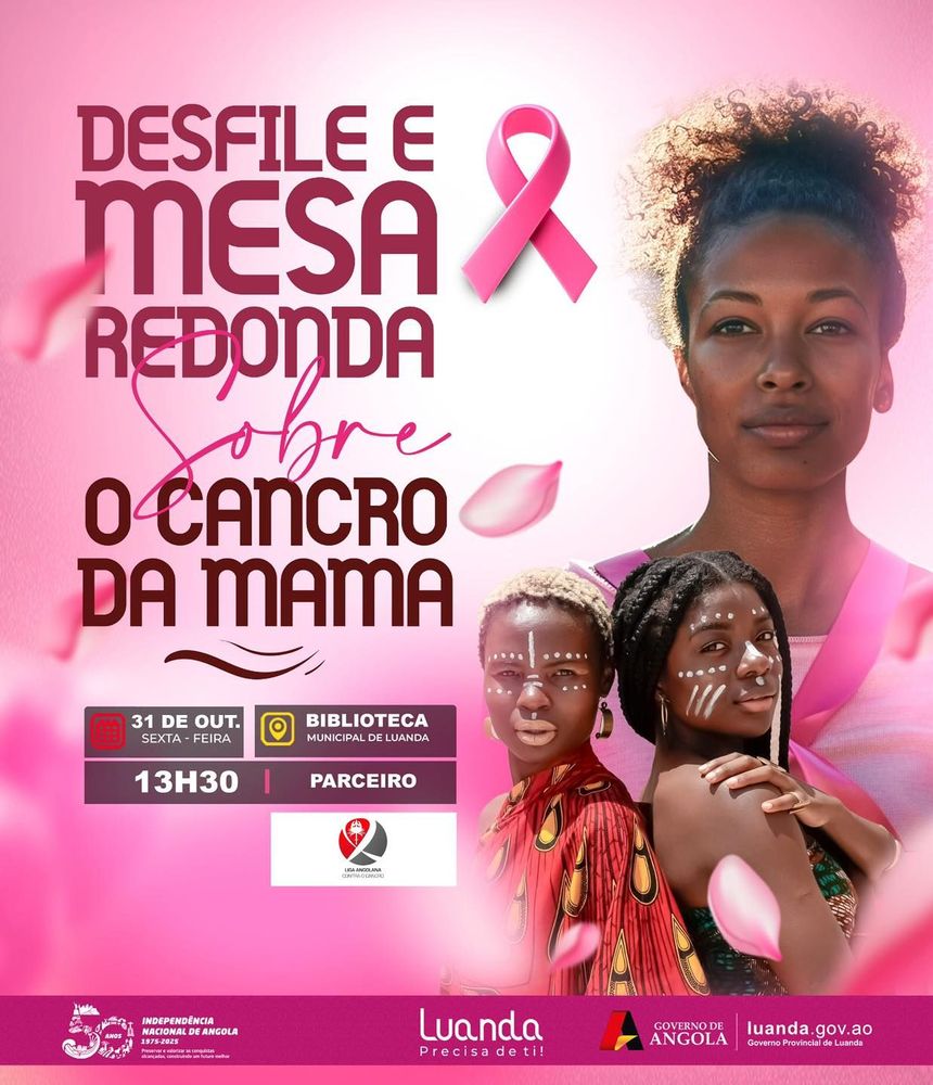 No âmbito do Outubro Rosa, o Governo Provincial de Luanda promove, na sexta-feira, 31 de Outubro, um desfile e uma mesa-redonda de sensibilização sobre a prevenção contra o cancro da mama.